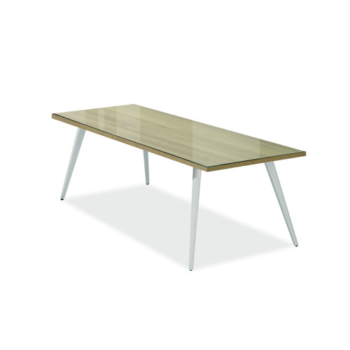 카펠라 라이트 월넛 회의테이블(백색다리/투명유리) > 테이블